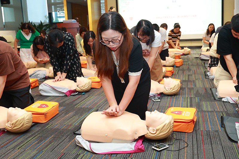 培训过程中,专业的急救讲师通过理论学习与实操练习相结合的方式,向学员们传授了急救的基本知识和技能。内容包括如何救助、如何发现问题、成人及婴儿的心肺复苏(CPR)模拟演练、体外自动除颤(AED)的介绍及模拟演练以及气道梗阻的紧急现场处理方法等。